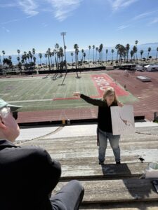 On a sunny Saturday January 10th, 25 Riviera Association members attended another in a series of Geology Talks hosted by the Riviera Association and presented by our city council person, Kristen Sneddon.  Kristen is a professor focusing on environmental geology at SBCC.  From the top of La Playa Stadium as well as in a SBCC classroom, highlights included an explanation of sand flow, plans to address climate change along the coast, and an overview of resources available online about the geology of our region.